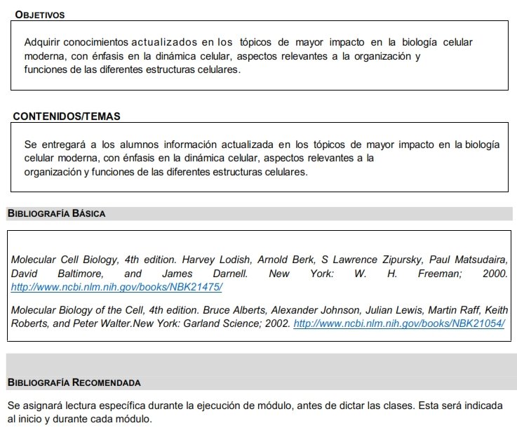 Biología Celular Avanzada es un curso integrador enfocado en adquirir conocimientos actualizados de los temas de mayor impacto en la biología celular moderna, con énfasis en la dinámica celular, aspectos relevantes de la organización y funciones de diferentes estructuras celulares.
