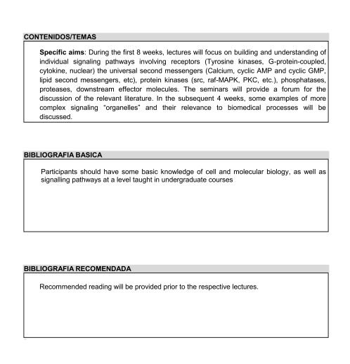 Objetivos principales: Adquirir conocimientos básicos y avanzados en una serie de vías de señalización relevantes para el desarrollo de las enfermedades humanas. Comprender los mecanismos de transducción de señales y cómo el mal funcionamiento de dichos procesos conduce a la enfermedad.