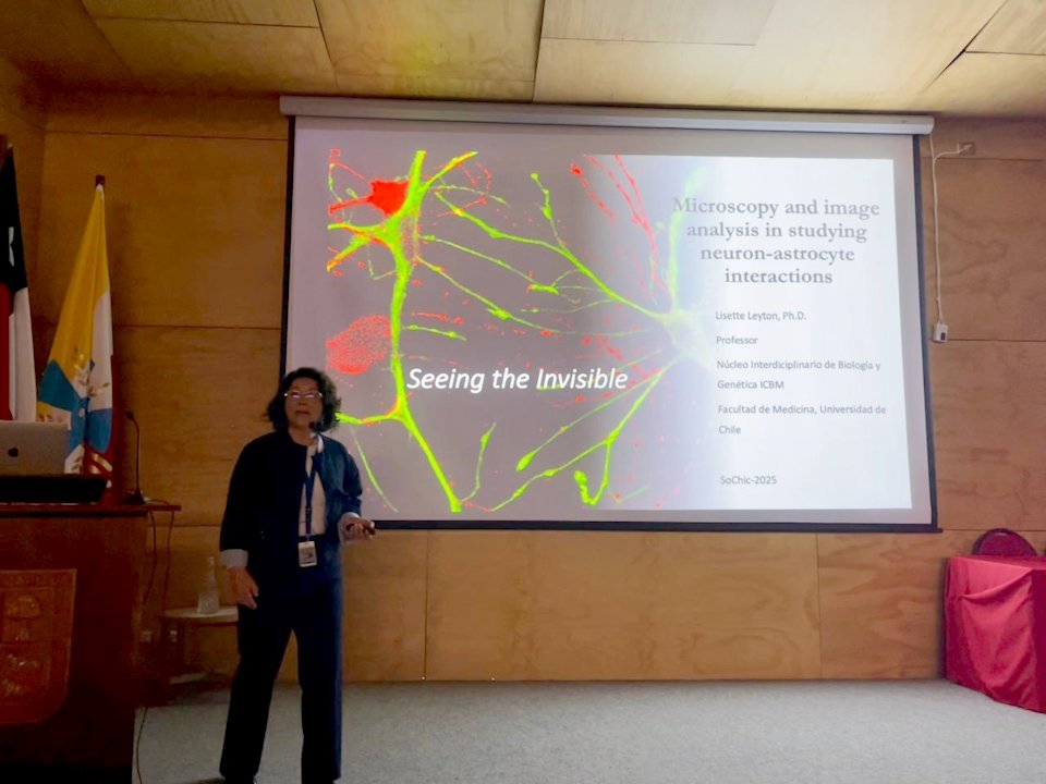 Durante la jornada, la Dra. Lisette Leyton, ofreció una destacada conferencia, titulada “Microscopy And Image analysis in Studying Neuron-Astrocyte Interactions”.