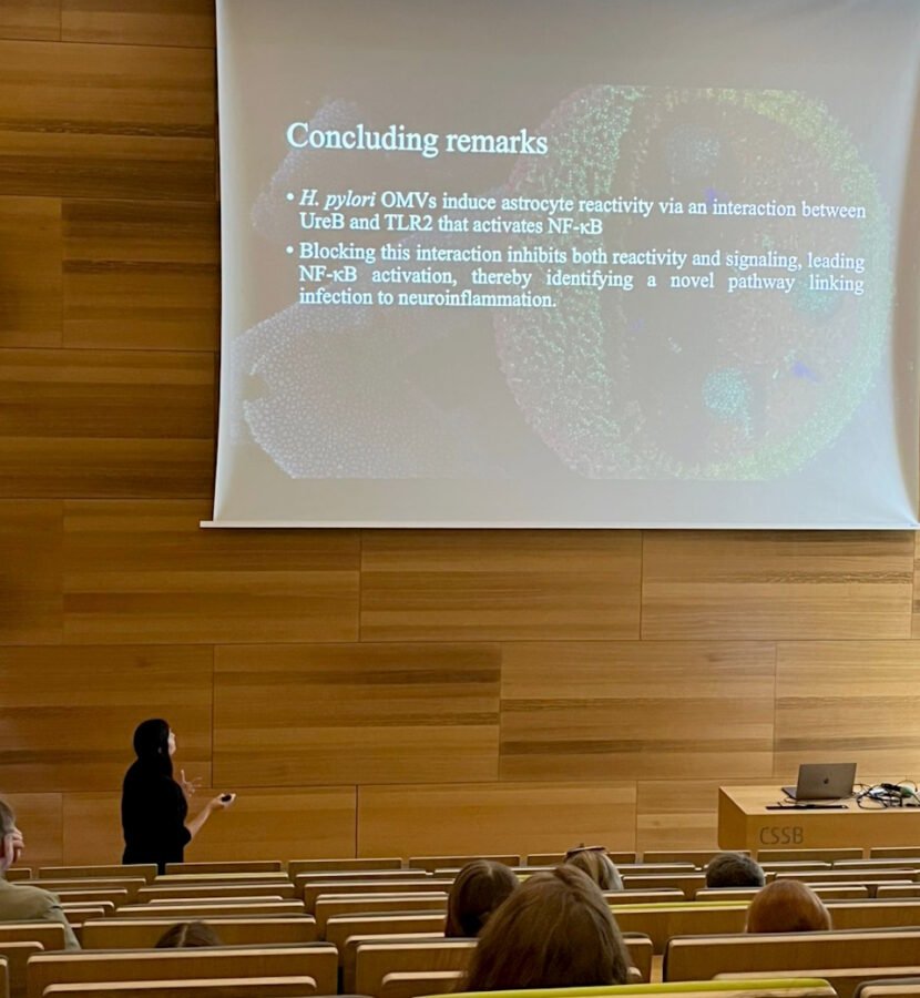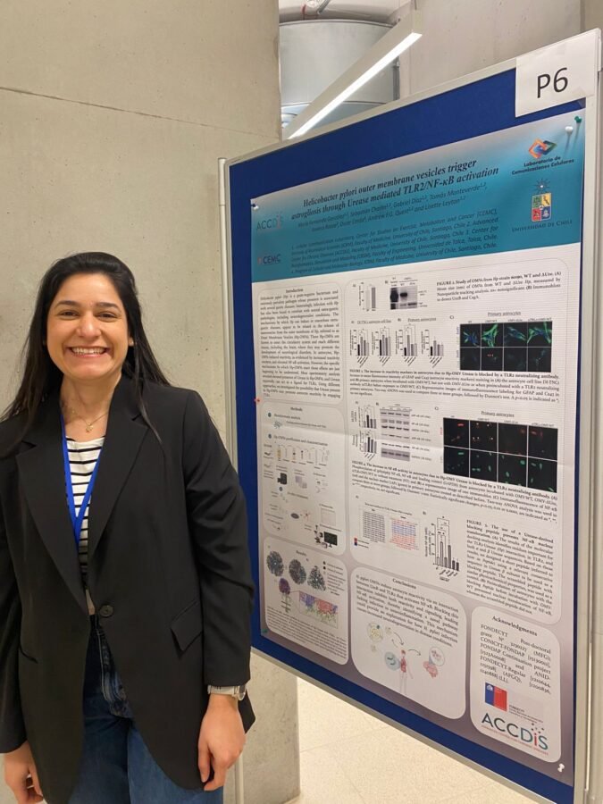 En este contexto, la Dra. María Fernanda González viajó becada mediante un «Travel Grant», para presentar su trabajo «Helicobacter pylori outer membrane vesicles trigger astrogliosis through Urease mediated TLR2/NF-κB activation», en este importante simposio.