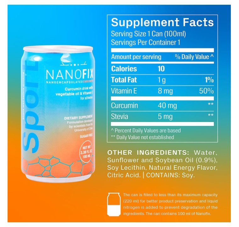 - La molécula de curcumina se transporta en un «nanovehículo» que la protege, teniendo también un tamaño único que permite la penetración de tejido. Ningún otro producto puede decir esto: Nanofix utiliza una nanopartícula de 220 nanómetros, probada y verificada en cada producción para garantizar la funcionalidad.
