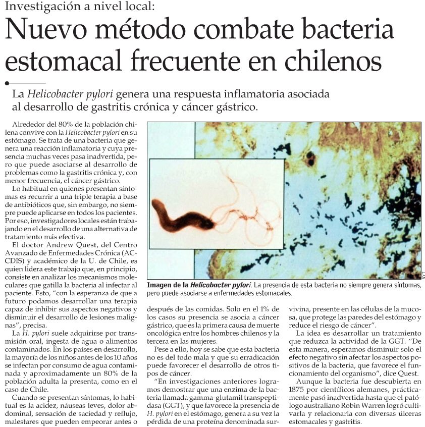 La Helicobacter pylori genera una respuesta inflamatoria asociada al desarrollo de gastritis crónica y cáncer gástrico