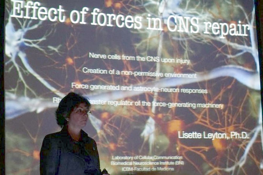 During her presentation, Dr. Leyton presented her studies on “The proteoglycan Syndecan-4 potentiates integrin-induced cell contraction”, which showed how the combined interaction between the astrocyte αvβ3 integrin and Syndecan-4 with the neuronal Thy-1 receptor suppresses neurite outgrowth and induces the contraction of existing processes, showing that Syndecan-4 contributes to generate an unfavorable environment for axon regeneration.